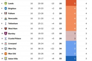 2、狼隊以7個烏龍球位居榜首,平均每8場比賽就有1個烏龍球,桑德蘭(6個)、利茲聯(lián)和布倫特福德(各5個)緊隨其后。