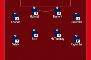 中場(chǎng):薩拉赫(利物浦)、賴斯(阿森納)、麥克托米奈(那不勒斯)、拉菲尼亞(巴薩)