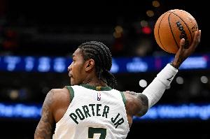 此役,小凱文·波特出戰(zhàn)40分鐘,投籃18中7,三分6中2,罰球7中6,得到22分4籃板13助攻1搶斷1蓋帽,但有7失誤。