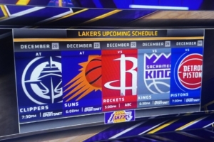 目前湖人19勝7負(fù),高居西部第三。接下來5場(chǎng)比賽,他們的對(duì)手依次是快船、太陽、火箭、國王、活塞。