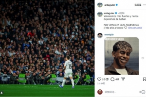 居萊爾寫道:“我們將以更強姿態(tài)回歸,并且永不停止奮斗。2026年見,馬德里主義者們。祝大家新年快樂!”